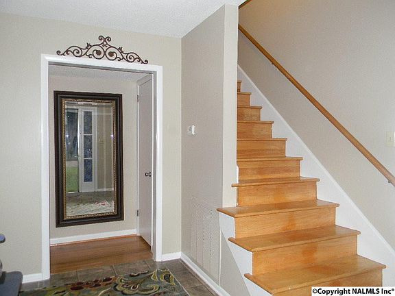 UPDATED MAY 2016 W/NEW PAINT IN KITCHEN (CABINETS & WALLS), BEDROOMS, BONUS ROOM & BATHROOM & NEW WATER HEATER SEPT 2016 . Great location on this 4 Bedroom home. Featuring lots of hardwood flooring, living room, dining room, bonus rm, 3 bdrms upstairs & a 4th bdrm downstairs. The downstairs bonus room could be converted into a master bedroom and the extra room off the laundry room could be turned into a master bathroom or it would make the perfect office or storage room. Stamped concrete patio in the backyard & the driveway is extra wide. Walk to the neighborhood pool, park, library, & Elementary school. Only minutes to shopping, restaurants, Redstone Arsenal, & the new Grissom High School.