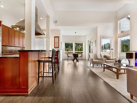 Spectacular combination found in this lovely home: huge view, large flat lot and great floor plan. Wall of Southery facing windows floods the home with light and private setting. Master on main plus secluded den, open and easy flow floor plan with separate spaces for privacy. Lower level offers spacious bonus room plus flex space & 3 bedrooms. Two very large decks with a few steps to the level yard, side area for any kind of ball games. Newly painted exterior, refinished hardwoods on main level.