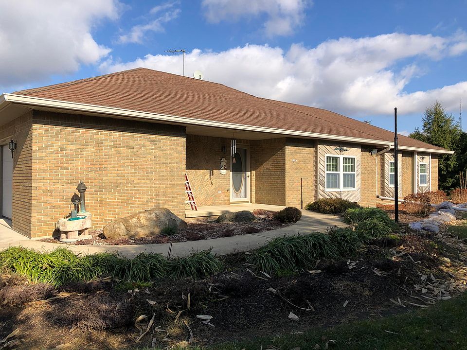 Just a few miles from town. Custom built home by current owner. All brick with open floor plan. Basement has a separate entrance and construction is in process to finish off as a possible 2nd family home or additional square footage for new owner. Basement has a full bath, rough plumbing for additional service. Wood stove and partially framed. First floor has oak cabinets. All appliances stay. Set up for adding a dishwasher and garbage disposal 3 full baths, three nice size bedrooms, utility room off of kitchen. Windows are Anderson with storm windows. Corner lot., pond, many trees, with garden Garage has hot and cold water, wash sink, stool, and drain for washing your car. House is total electric with central air added after home was built. Total Electric provided by Celina Utilities. Seller says average utilities $138.00 monthly. Outside sump pump and inside sump pump goes into the pond. Bus picks up at corner. Wabash and Frontier are available per seller. Seller is planning on renting.