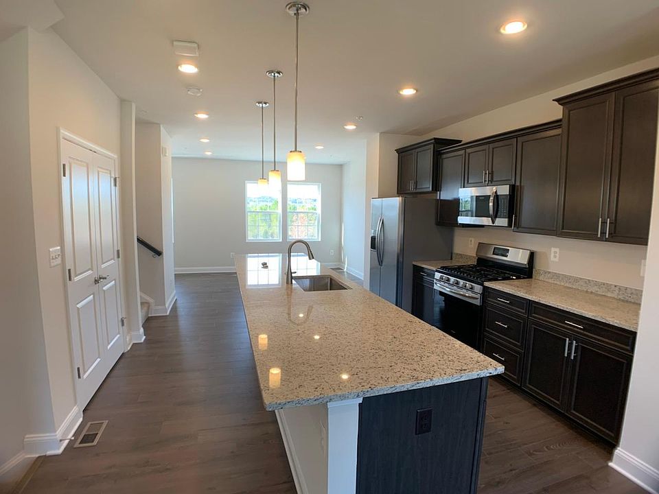 You can live in this newly built townhome in the sought after community of Trotters Knoll in Ellicott City! Contract fell through and it's back on the market! Lower level with garage entry, full bath and possible 4th bedroom or flex space. Prepare to be wowed as you ascend to the main level with the beautiful gourmet kitchen featuring large island, granite counters and SS appliances. Open plan with dining and living all in one space. Perfect for entertaining, or relaxing with friends or family. Upper level features spacious owners retreat with tray ceilings, Owners bath with dual vanities and huge walk-in shower. Bedrooms 2 and 3 are ample-sized. Plenty of storage space. Nestled off Old Montgomery Road, easily commute with access to Route 100, Route 32 and I-95. No pets, no smoking please. Flexible lease terms available.