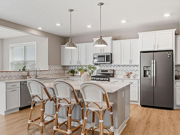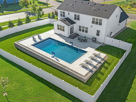 Charming 5-Bedroom, 4-Bathroom home located in the desirable Avonlea development in Lakeville! The front porch welcomes you to this spacious home with an open-concept floor plan filled with natural light. The modern kitchen that features stainless steel appliances and quartz countertops flows seamlessly into the living room with a cozy gas fireplace. Step out back to your backyard oasis which includes a gorgeous saltwater pool! You'll never want to leave this space! Upstairs, the master suite boasts dual sinks, a walk in shower and two walk in closets. Three additional bedrooms up, including a jack and jill bath and ensuite bath. The 5th bed is conveniently located on the main floor with a walk in closet and pass through to full bath. The lower level is a hockey players dream! Sport court flooring that can be easily removed when wanting to finish lower level. 3 car, heated attached garage. Community Center with fitness center, gathering spaces and playground. Walking distance to Grand Prairie Park (coming soon) with splash pad, pickleball, etc. Highly rated Lakeville School District!