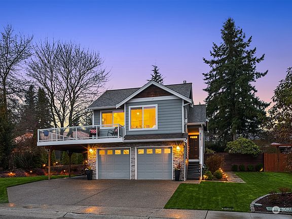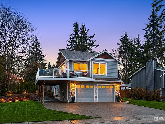 Sunlit Mukilteo home showcasing breathtaking sunsets over Puget Sound. Spacious great room with vaulted ceilings & large picture windows frame the mountain views. Beautifully updated kitchen. Entertainment sized deck off the dining room, perfect for summer grilling. Primary bedroom w/gorgeous ensuite bath & convenient access to the rear yard. Two additional bedrooms + a full bath up. Lower level recreation room complete with wet bar. A 4th bedroom, 3/4 bath & full-size utility room round out the lower level. Attached 2 car garage plus carport parking. Beautifully landscaped with a fully fenced rear yard, complete w/pergola & storage shed. Great commuter location w/top Mukilteo schools. Completely updated, immaculate & turnkey- welcome home!