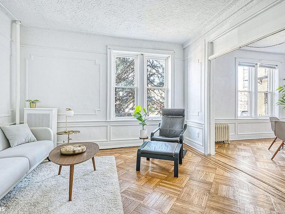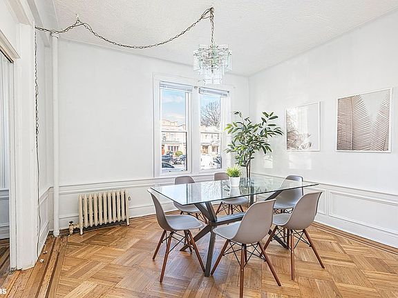 Spacious and Prewar large corner one bedroom with a full separate dining room in sundrenched with two exposures. It has lovely original details including picture windows, original oak bordered floors, decorative picture and chair rail molding, and high ceilings. On the first floor above street level, appreciate the welcoming layout with a large gallery foyer and side-by-side living and dining which are all so great for entertaining! Let's not forget the spacious windowed kitchen and windowed bathroom and -- drumroll-- a washing machine in-unit! Bring your imagination and create your dream home! This charming pet-friendly Bay Ridge boutique cooperative has 12 units, storage and laundry, and a common rear yard.