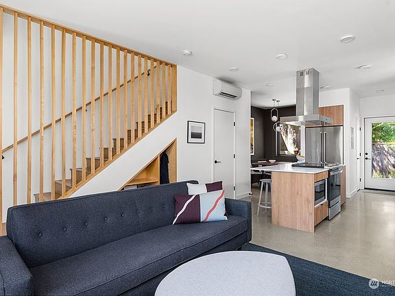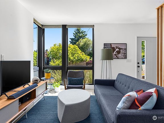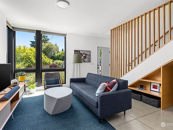 Discover your architect designed retreat in West Seattle's Gatewood neighborhood. This home seamlessly blends functionality with beauty, featuring light-filled spaces w/ floor-to-ceiling windows & polished concrete floors. The kitchen impresses with quartz countertops, stainless steel appliances, and designer tiles. Custom maple shelves & wall screen add clever storage & pleasing detail. Upstairs, vaulted ceilings accentuate two bedrooms w/ engineered oak floors, strategically placed windows, and Elfa closets. The well-appointed bathroom includes a double vanity & linen closet. Enjoy the serene private yard & proximity to amenities like Lincoln Park, Realfine Coffee, and the Morgan Junction. Experience West Seattle living at its finest!