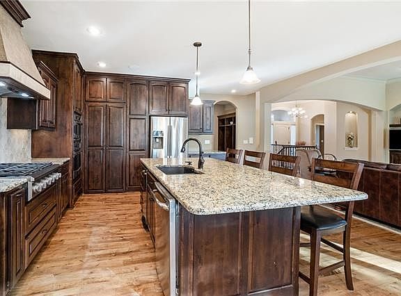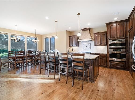 RARE opportunity to own this new beautiful 1.5-reverse/4 bed/3-car home in the heart of burgeoning Lenexa. Built by Starr Homes just 10 years ago, this home sits on quiet friendly culdesac boasting over 3500 sq ft. Starr Homes is known for their energy saving features 'Energy Star Home Energy Rating 5 Star Plus.' House is loaded with natural light w southern wall of windows, gorgeous floor to ceiling stone gas fireplace, open floor plan. Main-level owners suite has large bedroom w vaulted ceiling, double vanities, jetted whirlpool tub, walk-in shower, walk-in closet. The attractive kitchen sports large eat around kitchen island, granite countertops, GE appliance package, 6 gas burner cooktop, trash compactor, abundance of cabinet space, walk-in pantry w electric utility station, mud room, off-kitchen desk. Huge finished walk-out basement w great room, wood bar, wine fridge, large 2 bedrooms, jack n jill bath. Lovely evenings can be enjoyed out on the covered lanai w maintenance-free deck and built-in gas grill line overlooking lush yard. Extras: solid pine doors, rustic maple hardwoods, custom blinds, 2-zone HVAC, tornado shelter/wine cellar, google fiber, Sonos audio speaker system, alarm system, sprinkler system, painted interior garage. Washer/dryer/Epson projector/sanus AV rack w components/4 basement barstools/architectural drawings remain w home. Why wait to build when you can move in now! House is located within Oak Hill subdivision just minutes from newly-built Lenexa City Center full of restaurants, coffee shops, aquatic center, public market. Enjoy neighborhood swimming pool! 2022-01-16