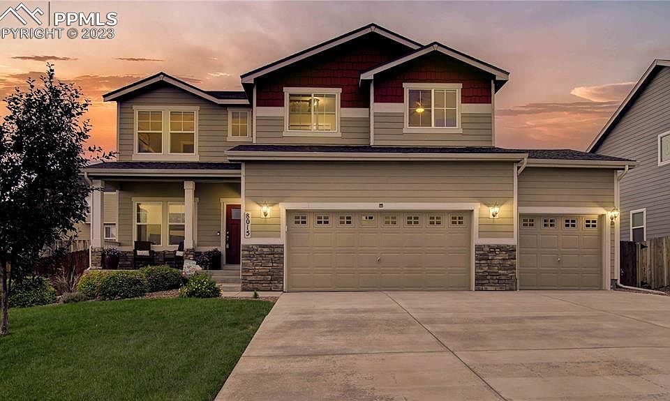 Welcome to The Glen at Widefield, where your dream home awaits! This magnificent 2-story residence boasts five spacious bedrooms and four elegant bathrooms, providing ample space for your family's needs. With a generous 2,875 square feet of living area, this home offers both comfort and style. As you enter the residence, you'll be greeted by a stunning foyer that leads you into the heart of the home. The open concept design seamlessly connects the living room, dining area, and kitchen, creating a perfect space for entertaining guests or spending quality time with loved ones. The abundance of natural light enhances the warm and inviting atmosphere throughout the main level. The kitchen is a chef's delight, featuring modern appliances, sleek countertops, and ample storage space. Whether you're preparing a casual meal or hosting a grand dinner party, this kitchen is sure to impress. Adjacent to the kitchen, you'll find the dining area, perfect for enjoying your morning coffee while taking in the beautiful views of the backyard. The upper level is dedicated to the private living quarters where 4 of the 5 bedrooms are. The spacious primary bedroom offers a peaceful retreat, complete with a luxurious en-suite bathroom and a walk-in closet. The three additional bedrooms provide plenty of space for family members or guests, ensuring everyone has their own comfortable sanctuary. The 5th bedroom is quite large and is situated in the basement along with a full bath and large living area. One of the highlights of this home is the spectacular entertainers' backyard. Step outside and be greeted by a meticulously landscaped oasis, featuring a spacious patio, lush greenery, and an inviting outdoor seating area. It's the ideal space for hosting gatherings, barbecues, or simply enjoying a tranquil evening outdoors. In addition to its stunning features, this home also includes a three-car garage, providing ample space for vehicles, storage, or a workshop.