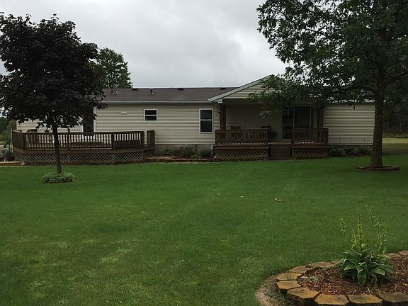 This Manufactured home is ready to move into, three bedrooms, two bathrooms, kitchen with all the appliances, family room with fireplace, large living room, main floor laundry with washer, dryer, water softner included in sale. Five acres, partially wooded and partially pasture, sheds, small stable for those farm animals you have always wanted. Decks, sidewalks, landscaping, underground sprinkling. Three stall detached garage with extra stall, two large doors, generator, air compressor also included. The outdoor wood boiler and carport for wood storage is also included in the sale of the home. Time to check this home out, call for your appointment today!