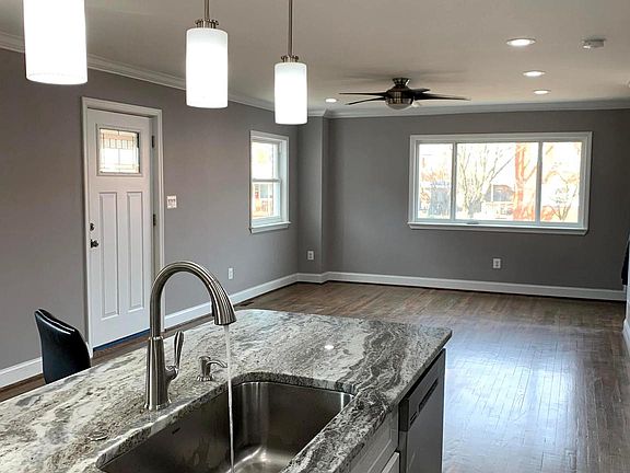 Gorgeous from top to bottom fully updated 3 bedroom, 2 full bathroom home. NEW roof, NEW HVAC, NEW drywall, NEW windows, NEW recessed lighting throughout with dimmers, NEW light fixtures/fans, NEW interior/exterior doors, NEW kitchen with new SS appliances including gas stove, garbage disposal, tile back splash, granite counter top and island, with custom soft close cabinetry, NEW bathrooms with custom tile & vanities, crown molding on mail level, NEW beautiful finished hardwood floors on 2 levels, NEW hot water heater, TV cable/outlets in each bedroom, family room and basement. Basement fully finished to include NEW carpet, full bathroom, laundry, storage and optional 4th bedroom. Basement leads out to back yard with a rear parking pad. Come check out this amazing beautiful home that has been renovated from top to bottom- it will not last long!
