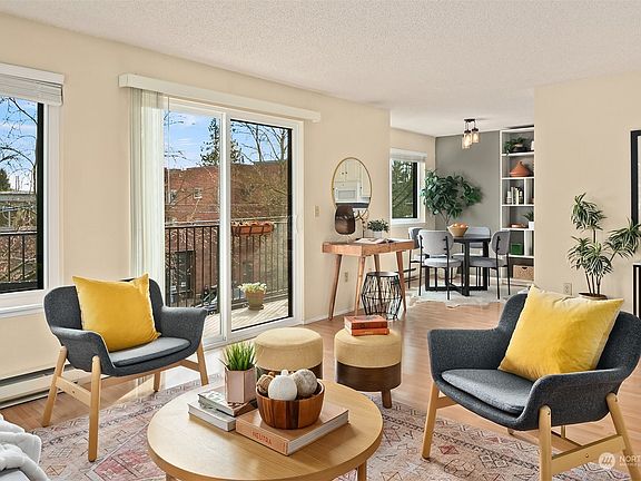 Welcome home to your chic and comfortable condo in the heart of Greenwood. A two-bedroom, corner unit condo with a proper primary bedroom boasts brand new windows, tons of storage and a deeded/secured parking spot with EV charger in the common garage. Flex the versatile second bedroom(with French doors) into your ideal home office, TV room, or gym. The darling kitchen with built-ins and dining nook flow into the generous living room that's absolutely teeming with natural light.  Relax, read, or grill on the balcony while overlooking the avenue. This location truly has everything: convenience, coffee, restaurants, and respite, all just steps away.