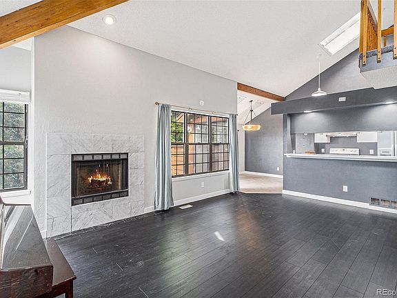 Large/roomy end-unit Sequoia Condo in a beautiful area of Arvada near "Little Dry Creek Trail," parks, lakes! This 3(4)- bedroom condo with 3 bathrooms is part of a 4-plex in this coveted community. End-unit with semi-private grassy areas, 2 large patios, a balcony, and covered entry porch! With 3 levels, there are private spaces for the whole family throughout! Main floor Living room/Kitchen/Dining room are open concept with a lovely fireplace! Upstairs is the primary bedroom suite with balcony. Main floor includes a bedroom (with large patio & private entry/exit). Basement has a spacious family room, bathroom, bonus office/gym/entertainment room (could be a 4th "non-conforming" bedroom) and also another bedroom. Inviting & private entry porch area. Beautiful piano in place that could be included or excluded on sale at the preference of buyers! Brand new Electrical Panel installed 6/24. Nearby parks abound: Little Dry Creek Trail, open park play areas at nearby Wood Run Park, and Arvada Volunteer Fire Fighters Park! In addition, another trail nearby surrounds Pomona Lake with incredible views! Hurry to see this "ideal location" condo!