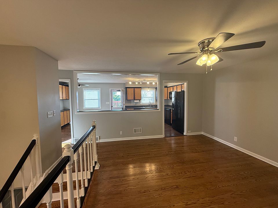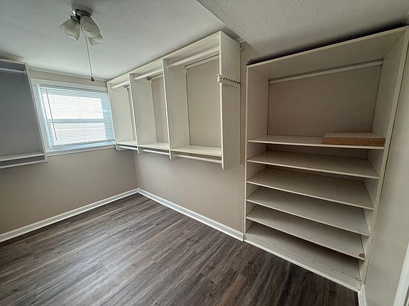 Spacious 4 bedroom home with living space and bedrooms/bathrooms on both levels. Plenty of kitchen and cabinet space. Appliances are included. Master bedroom is enormous with a master bedroom closet with built in shelving and storage. Outdoor space includes a spacious walkout deck, huge back yard and a detached 2 car garage