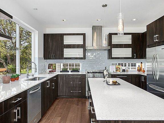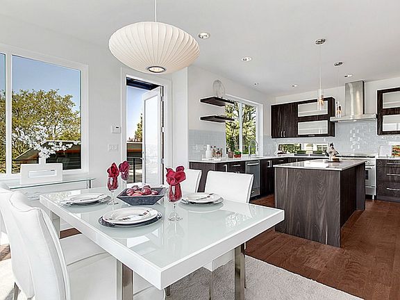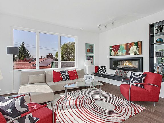 Design meets sustainability in dramatic new modern 3 blocks from Greenlake. Extraordinary light & panoramic views. BuiltGreen5, high performance systems, solar and EV ready. Top floor view master suite plus 2 large bdrms & addl full bath. Open floorplan on main links office, living, family & dining w/ chefs kitchen and view deck. Ground floor family room, potential ADU w/ 2 big bdrms, stainless kitchen, laundry & own entry. Rare 2-car garage plus covered SmartCar space. Todays new standard.