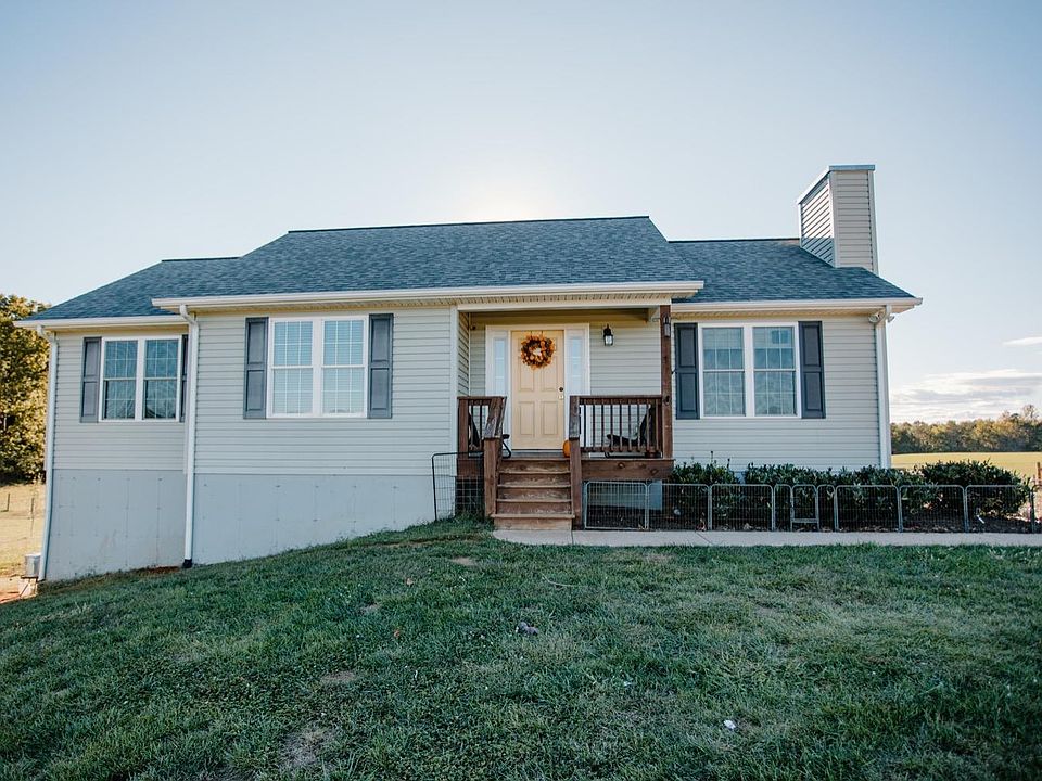 Beautiful move-in ready newer home on a flat five acre lot! You will feel at peace with the scenery this property has to offer, surrounded by pastures, mountain views and breath taking sunsets. The home sits privately off the road. Inside features include a gorgeous kitchen with custom cabinets, granite, bamboo flooring and plenty of storage space. All main level living includes a spacious living area with a laundry room and custom master suite with vaulted ceiling and expanded walk in master closet. All of the bathrooms offer a double vanity sink. Relax on the back deck. Full unfinished basement has room to grow or lots of storage space, with rough-in plumbing already there Exterior upgrades include fencing in the entire property, 4 steel buildings, with one that is 35X24 (partially enclosed) having concrete, water and electric, and one storage shed. A great set up for farm animals! The town of Appomattox and 460 is just minutes away from this property.