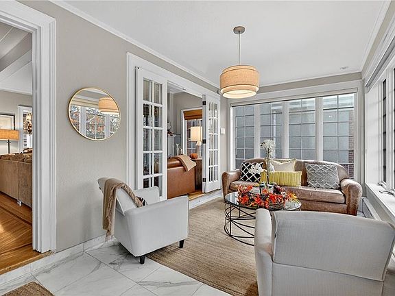 Welcome to this Beautifully Maintained and Expansive Bay Ridge Home, ideally situated in one of the Most Desirable Locations in the neighborhood. Warm, inviting, and full of natural light, this residence offers an exceptional layout with generous room sizes and timeless charm throughout. The home begins with a bright, enclosed front porch, surrounded by oversized windows that create the perfect spot for morning coffee or a peaceful reading nook. From there, step into the spacious living room, an elegant gathering space that features a gas fireplace as its focal point and flows seamlessly into the formal dining room, ideal for hosting family and friends. At the rear of the first floor sits a large eat-in kitchen, complete with ample cabinetry, granite counters, and a dedicated breakfast area. Sliding doors lead directly to the private backyard…perfect for outdoor dining and entertaining. A convenient powder room completes the main level. The second floor offers three well-proportioned bedrooms and one renovated full bathroom, beautifully renovated and featuring radiant heated floors for added comfort. A fully finished basement adds even more space, perfect as a recreation room, playroom, gym, or media area, along with additional storage, laundry, and an extra full bathroom. To complete this exceptional property, the home also includes a Private Driveway and a one-car garage true conveniences in Bay Ridge.