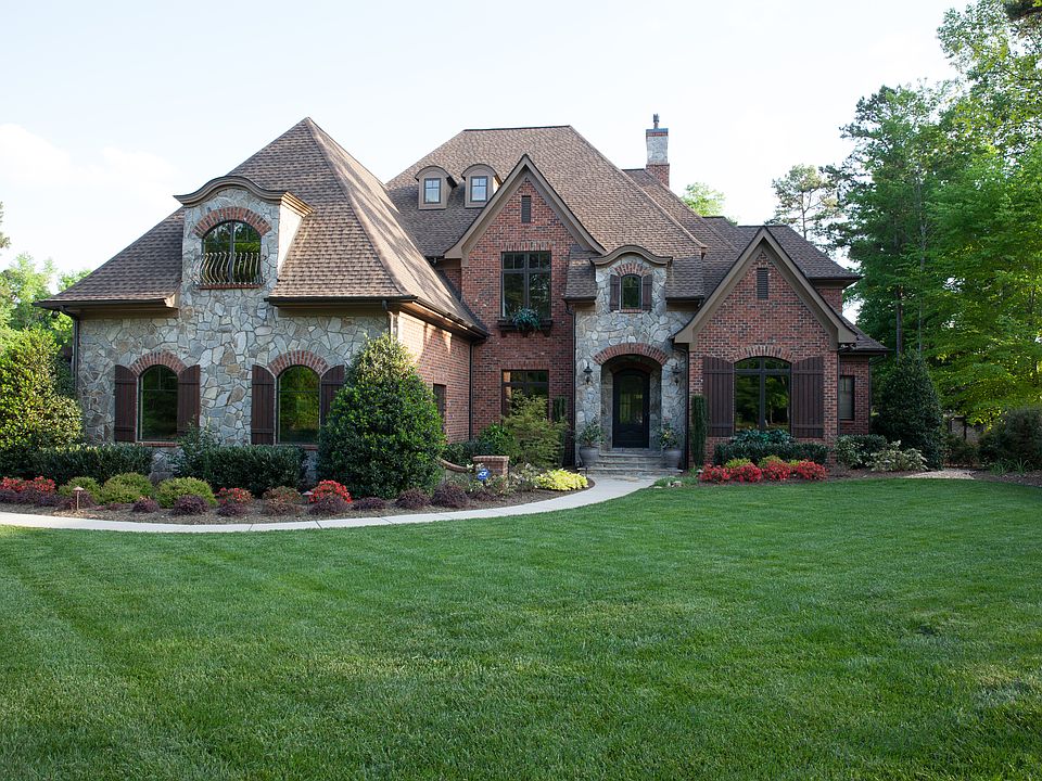 Gorgeous full brick and Stone home in gated community of Skyecroft. Master down floor plan with large open kitchen open to family room w/ wood beamed ceiling and stone fireplace, Home office/Study on the main level w/ hardwood floors throughout the main level and upstairs landing & hallway. Kitchen features professional grade appliances, built-in refrigerator, granite, and backsplash. Huge, covered rear terrace with access from Kitchen and Family Rooms. Second level features 3 or 4 bedroom option w/ 2 or 3 bonus room options. Upper terrace off one of the bonus rooms overlooks large, private backyard w/ water views. Two large unfinished areas on upper level perfect for storage. Community pool, tennis courts, recreation area, and walking trails. Weddington Public Schools.