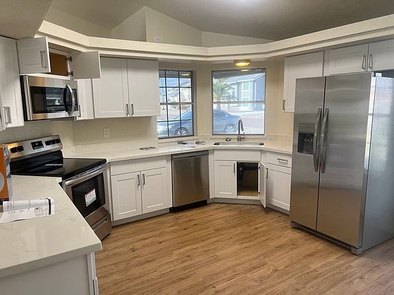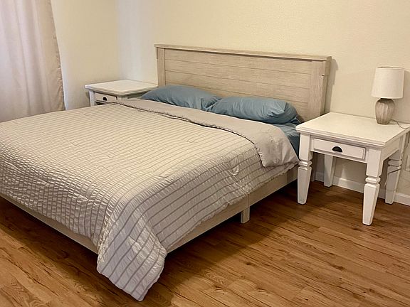 FULLY FURNISHED SHORT-TERM rental home. Beautiful remodeled, upgraded in all facets. Fenced pool, two car garage, all basic kitchen utensils, including plates, glasses and cookware, comfortable beds and bedding, wood flooring, ceiling fans and much more. Short term lease. 1-3 month duration. Property is available until Oct 15,2025. Fully furnished, all utilities, internet and pool service included. Good credit and references required. Max 4 occupants total. 2 well behaved pets allowed with refundable pet deposit. No smoking or parties allowed on or in property.