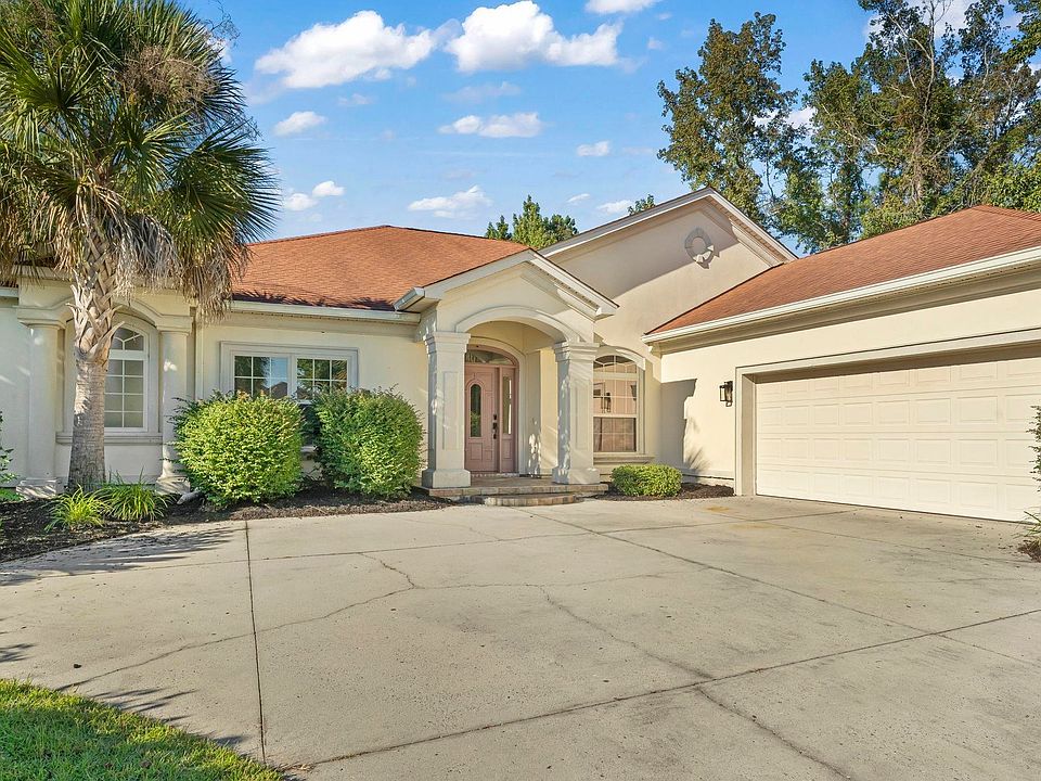 ***OPEN HOUSE Sunday November 2nd 12-2pm*** A Mediterranean, single level house, located at the prestigious, gated community of THE BLUFFS ON THE WATERWAY. As you enter, you will be greeted by the oversized foyer and a formal dining room. The open concept provides easy flow into the massive living area. The master suite boasts a custom walk-in closet, trey ceiling and the luxury, spa, master bath with a tiled walk-in shower as well as a tub. The house has an outdoor kitchen as well as a fenced backyard. There's a flex/office room with new carpet, that can also be converted into a 4th bedroom. The Bluffs has first class amenities including a resort-style clubhouse, swimming pool, tennis/Pickleball courts, playground, basketball, private boat ramp, and secure boat storage. There's a second clubhouse along the scenic Intracoastal Waterway. Located in the coveted Carolina Forest school district, you’ll benefit from easy access to International Drive, Highway 31 and with shopping, dining, entertainment, and the beach just minutes away