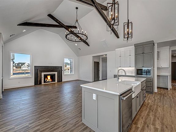 Builder offering, Interest Rate Buy Down, Closing Costs and or Upgrades call for details. New Transitional Home On Pond Offering 3 Bed, Study with Barn Door Entry, 3.5 Baths, Bonus Room (optional 4th bedroom) 3rd Bed Upstairs with Full Bath. 2nd Downstairs Bedroom with Simi Private Bath. Beamed Ceilings in Living Area and Kitchen. Open floor plan from Great Room with Fireplace to Chefs Kitchen. Lots of Kitchen Counter Space and Cabinets, Quartz Counters, Deep Farm Sink, 5 Burner Gas Cook Top and Griddle, Oven with Air Fryer, Large 4ft X 8ft Island Breakfast Bar with Farm Sink. Butler's Pantry, Quartz Counter Tops, Sink, Cabinets, Extra Storage and electrical for appliances. Beautiful back yard with Pond view, oversized Covered Patio, Cable, Gas Fireplace, Gas hook up For a Grill. Wood Tile Floors throughout Kitchen, Living Areas and Study. Your Owners Suite with Deep Soaking Tub, Dual Vanities and Make Up Bar. Master Closet with Chests connects to Utility Room with Sink and Hall Mud Room. Gated Community with Pool, Club House, and Playground. Easy Access to I-35 and Shopping.