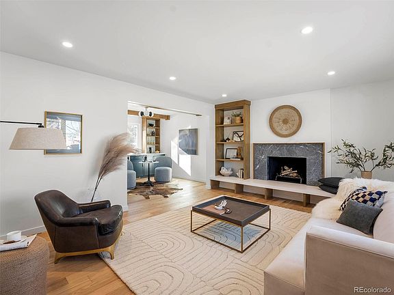 The ALDER HOUSE: Fall in love with this full remodel by Osina Development. This project is not your standard cookie cutter remodel but instead an expertly crafted masterpiece. Every inch of this home has been touched with hand curated design elements.Located in the highly sought after Walnut Hills neighborhood, near the Highline canal and in the heart of DTC. Three lg bedrooms upstairs w/ west facing mountain views & large closets. Primary suite features a boutique hotel-like bathroom with dual vanities, USB ports, large frameless walk-in shower with rain head + handheld wand, and double walk in closets. Lower level features 4th bedroom, laundry space with storage/hanging, 3/4 bath, large storage room, and double flex spaces (could be 5th bedroom as egress is present). The bright kitchen with windows to the backyard includes all new kitchen appliances, Alder and wood cabinetry, new 3cm quartz countertops, loads of storage and seating, and direct sliding door access to covered back patio and newly fenced in yard.The adjacent library is a perfect addition for expanded entertaining space with beverage refrigerator, custom shelving, quartz countertop and alder beams. Dining room features new decorative alder ceiling beams, decorative wainscotting, wood burning fireplace, and dreamy wallpaper. Living room includes second wood burning fireplace with new natural stone surround with decorative alder trim and bright windows to the front of the home. New quartz shelf and custom alder shelving added for style and function.New paint/trim/solid core doors/plumbing and lighting fixtures, hardware throughout, new hardwood flooring on main and second levels with new LVT carpet in basement, new level 5 texture on walls and ceiling throughout, new handrail on stairs to second floor. Yard features new sod in front/back, new irrigation system, new cedar privacy fence in back and side yards, new Trex decking , new cedar soffits, and new cedar shutters.