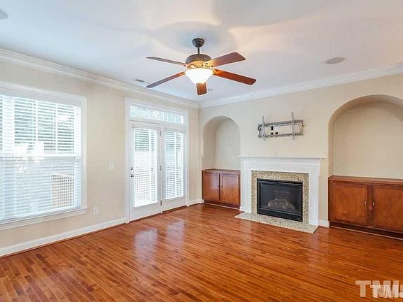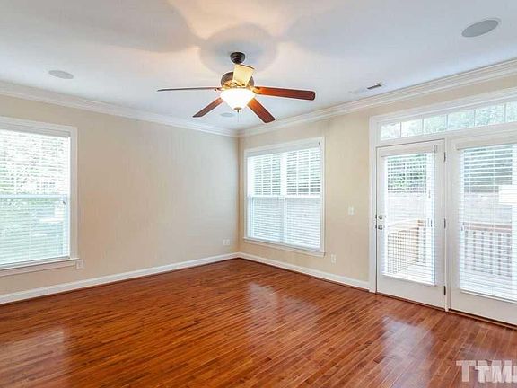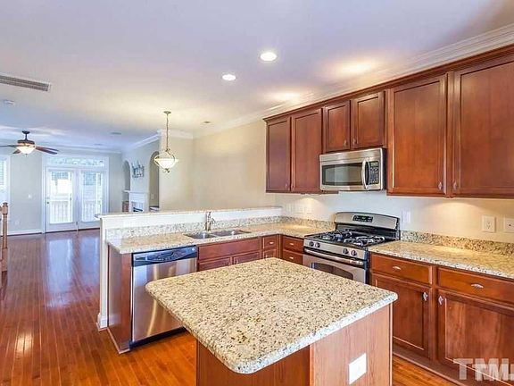 Avail 11/07; No pets. Beautiful End unit Townhome in Townes at Umstead neighborhood. Almost 2000sqft grace this open floor plan. Eat in Kitchen features SS appliances, center island, pantry, and hardwoods. Family Room w/gas fireplace, crown molding, built ins and access to deck. Cathedral ceilings and WIC in MB. Master Bath w/Garden tub and tile surround walk in shower. Main level with Office/3rd Bedroom and storage. Two Decks and Patio for entertaining. Convenient to RTP, RDU, I-40, and Umstead Park!