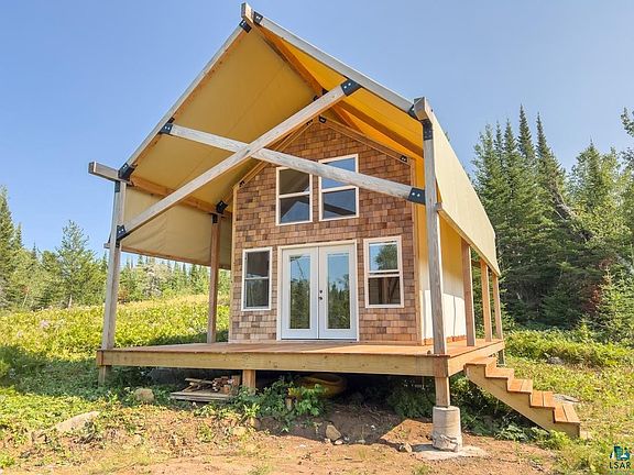 Poplar Lake at Mid-Trail on the Gunflint Trail. Deeded access to Poplar Lake with large dock. You have 3 BWCA Entry Points from this one-of-a-kind property. As the owners of Cedar Bound state...... "Where Modern Cabin meets Luxury Tent". Cedar Bound Cabins, a local Duluth based company combines designed crafted timber frame with canvas walls, a canvas roof, and solid side walls. The interior canvas has 4-layer arctic insulation providing year-round use. The cabin was built in 2021. Fixtures and supplies are on-site to complete the interior and are included in the sale. This includes the main level flooring (loft already completed) a 3-piece bathroom set including the toilet, sink, and the shower surround. The cedar siding shakes for the back of the cabin are also on-site and included with the sale. The property was cleared and the driveway widened and improved in 2020. A new well was drilled in 2021. Plans for a holding tank septic system (with eventual build-out to mound) has been approved by Cook County. There is also room on the 1.71-acre property for a second dwelling. There is an easement across the Gunflint Trail that provides access to Poplar Lake including a large dock equipped dock for your fishing boat/pontoon. A well-traveled moose trail runs directly through the property. There is a 20'x40' parking pad on the property used as parking for the owners of an island. It is encouraged new owners meet with Island owners. With a little work, this could become a dream modern cabin/luxury Clamp on Poplar Lake. Seller's are sad to sell as this has been their dream project. However, they are relocating to an International location and will not be able to make frequent trips back as once hoped. All the heavy lifting has been done. The new owner(s) can simply put the finishing touches on it to make it likely one on the more unique and Uber cool properties on the Gunflint Trail.