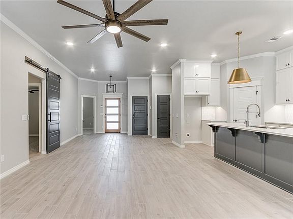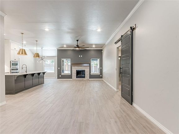 Own a piece of paradise in highly sought-after Woodland Park and Edmond schools! (Zillow is not correct about location or schools). You'll love the wood tile and split-face rock fireplace in the living room and kitchen includes a large island with beautiful quartz countertops, open bar seating with cabinets to the ceiling, giving you plenty of storage space, and there's even a walk-in pantry. The primary suite features a jetted bathtub and a walk-in shower with dual granite vanities and an Australian closet. This home is super functional with 4 beds(or study up front) 2 baths. You'll love spending time on the back patio, where there's a wood burning fireplace and a view to your very own oak trees in your backyard. And if that's not enough, this home also comes with access to the community pool, fitness center, and a frisbee throw from the kids playground. Woodland Park feeds into Edmond's brand new Redbud Elementary. Don't wait any longer - come see this home today!
