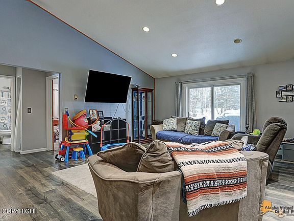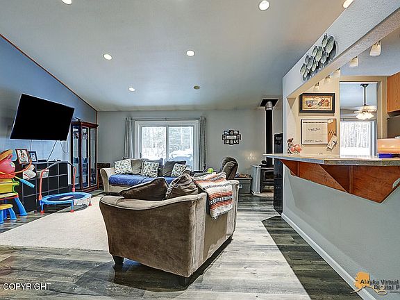 This ranch home boasts 3 bedroom/2 bath on an acre with a large arctic entry and great room with vaulted ceilings and wood stove. Split bedroom layout with good sized rooms and a master bedroom w/ on suite. Kitchen with a pantry and breakfast bar plus a dedicated dining room. Fenced yard and the back deck is wired for a hot tub. Shed, RV parking, metal roof, 2 car garage with a sink and work bench