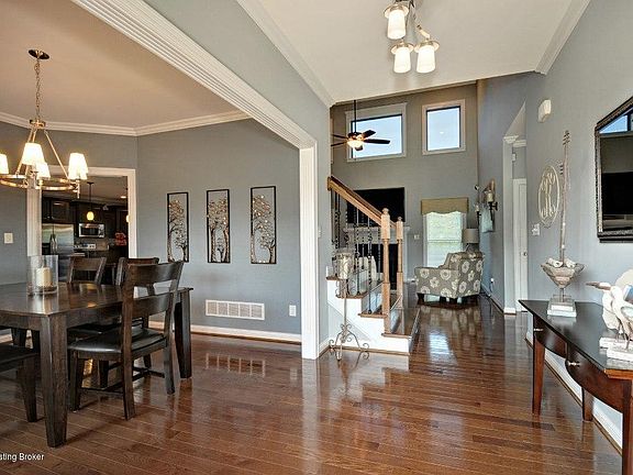 STUNNING 4 BED, 3.5 BATH WITH FINISHED WALKOUT BASEMENT, SIDE ENTRY GARAGE AND OVER 4600 FINISHED SQUARE FEET IN DESIRABLE ESTATES OF ST. ANTHONY! CUSTOM BUILT IN 2012 WITH TONS OF UPGRADES. Hardwood floors. Spacious Eat-in Kitchen. Open Floor Plan. Ceramic tile in all bathrooms. First floor master suite. Dual HVAC System. Average LG&E Bill only $209.20. Doublewide Driveway. Irrigation system front and rear yard with wireless rain sensor. Security system with 4 cameras. Professionally installed garage cabinets. Beautifully landscaped added curbing. Gorgeous finished walkout with full bar, granite tops, TV, wine cooler, surround sound, fridge and sink, 2nd fireplace, pool table/ping pong area, mower/golf cart room. Large rear deck with gas line for grill and rear patio area. (MORE)