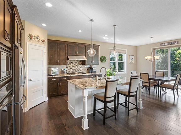 Inside, you'll discover a modern kitchen with a walk-in pantry, stainless steel appliances, and a large center island, perfect for family gatherings or entertaining. The main floor offers added convenience with a laundry room that connects directly to the owner’s closet, making daily chores a breeze. The walk-out lower level provides additional living space and opens to a beautifully landscaped backyard complete with a cozy fire pit. Relax or entertain on the maintenance-free deck while taking in the serene pond views. With a grill plumbed directly into the deck, outdoor cooking has never been easier.