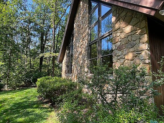- Exterior features: Stone, Wood