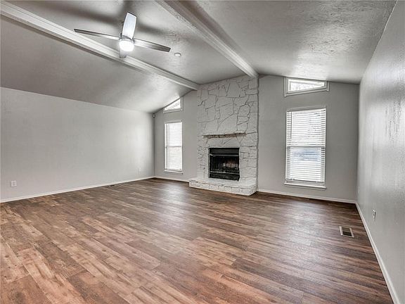 Newly renovated home close to NW Expressway is just what you are looking for! Fresh flooring and fresh paint create 1813 sq. ft of traditional charm! Pool even has a new vinyl liner! Laminate wood flooring greets you in entry & fills high trafficked areas. Living room is huge w/ stone fireplace & large windows to let in natural light. Formal Dining area off living room has built in shelves & cabinets for extra storage. Formal dining area features a mirror accent wall w/ chandelier. Kitchen is a chef's dream w/ brand new granite countertops, stainless steel appliances, & ample amounts of counter space. The two guest bedrooms are perfect in size w/ ceiling fans & closets. Main bathroom has granite counter tops & easy access for guests! Master bedroom is spacious w/ walk in closet. Master bathroom has dual vanity sinks, granite countertops & step in shower. Walk outside to a fenced, in-ground pool with new liner, slide and diving board! ~Easy to call home~ Schedule a showing today!