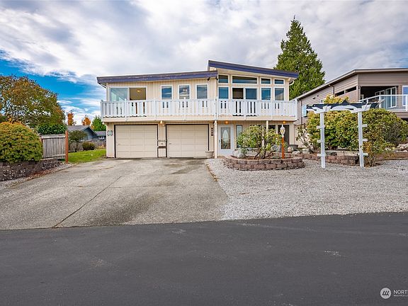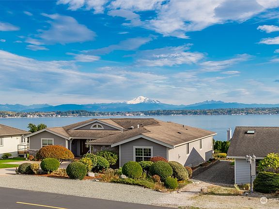UNOBSTRUCTED VIEWS of Mt Baker, Birch Bay, and the San Juan Islands! Stunning sunrises and sunsets! Investment opportunity with instant equity to be gained upon improvements or bring your creative mind to fix up and make shine! Entry is on the lower level along with the family rm, 2 bedrooms, a ¾ bath, the laundry room and double-car garage w/ workspace and storage. The upper level is a wall of windows allowing the view to be center stage! Great flow throughout the kitchen, dining and living rooms. Sunroom off kitchen and primary bedroom with full bath. Additional ½ bath and bedroom across the hall. Partially fenced with storage shed. Safe gated community, private beaches, marina, golf course, clubhouse, pool, sports courts and dog park!