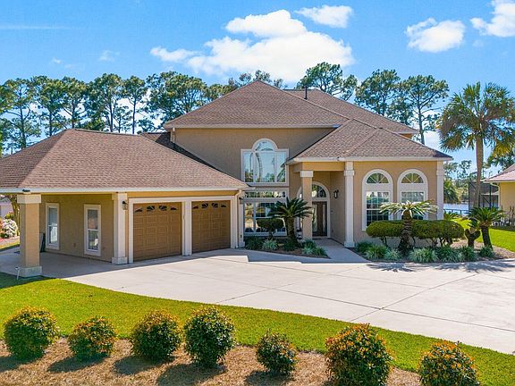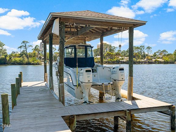 Owner Financing Available. Welcome to your tranquil waterfront paradise in Panama City Beach! This stunning custom home sits majestically on a sprawling .91 acre lot, boasting 100 feet of prime lagoon frontage with deep water access to the Gulf.