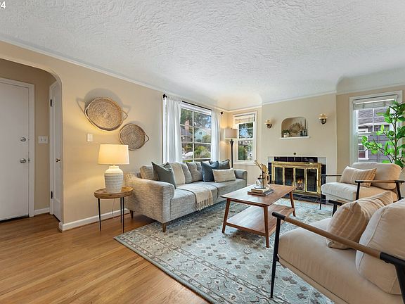Charm, style, and convenience come together in this adorable 1940s bungalow, perfectly situated on one of the prettiest streets in South Burlingame! With tons of curb appeal, this home exudes warmth and character at every turn. Beautifully preserved architectural details include coved ceilings, picture moulding, arched entries, stunning hardwood floors, leaded glass, and period fixtures. Recent updates include newer windows, roof, sewer line, paint, kitchen cabinets, and carpet. The main level lives large, with coveted circular flow. Striking living & dining rooms seamlessly blend past to present, filled with trendy earth tones and stunning original features. Two spacious bedrooms are tucked away from the common areas, and a bright modernized kitchen includes a lovely breakfast nook overlooking the backyard. A finished lower level with family room and bedroom with full bath offers flexibility for guests, a home office, or even a possible rental. Outside, a deck and fully fenced yard provide a wonderful backdrop for relaxation or gatherings. Fantastic, close-in location just moments to Tryon Creek State Park, SW hiking trails, Multnomah Village, and Hillsdale. Easy commute in any direction, and a quick ride to OHSU or the downtown corridor. Offer deadline: Thursday, 10/17, 7pm. [Home Energy Score = 3. HES Report at https://rpt.greenbuildingregistry.com/hes/OR10202096]