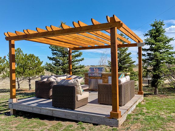 Looking for land...10 acres within 10 minutes to Parker with a 1200 detached garage/shop and small barn/shed good for horses or even chicken coop. What a location with land, close to town and an updated home with over 2800 finished sqft. Peaceful and beautiful setting. Outdoor kitchen area with Pergula, barbecue grill, RF & wired for speaks and surround sound. Multi-level home with walk-out basement finished. Remodeled throughout with updated kitchen including slab granite, new tile flooring & stainless appliances with sub-zero refrigerator. Hardwood floors. Newer custom lighting. 6 panel doors. Newer carpet throughout. Newer paint throughout. All bathrooms remodeled. Wet bar with slab granite, cabinets, wine RF and beverage RF. Pool table area with eating bar having slab granite. Finished walkout basement. Master suite with its own bath. Another large bedroom with its own three-quarter bath completely redone & this bedroom is large with sitting area and its own exterior access.