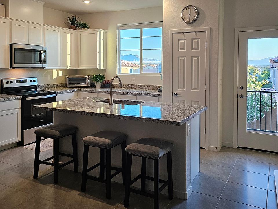 Blackout shades with low emissivity windows keeps the unit sunny and cooler during the day and ready for deep sleeping at night. Keyless entry in safe, quiet neighborhood. Beautifully landscaped with fenced in dog park, barbeque area, and children's playscape. Stunning mountain views from kitchen and a covered porch and balcony. Furnished, unfurnished, or partially furnished you decide! Ten minutes from the Strip, Allegiant Stadium, and the Harry Reid international Airport. Conveniently located two blocks from Route 215 and Rainbow Rd. Close to Southern Hills hospital and medical center and five minutes from new Durango Casino and Ikea. Next door to shops, spa, and dining at new Evora Development and less than 2 miles to Home Depot, Walmart Superstore, Best Buy, and many other shops at Arroyo Crossing. Nearby hiking and biking at Red Rock Canyon. Enjoy the easy lifestyle of Southern Las Vegas living!