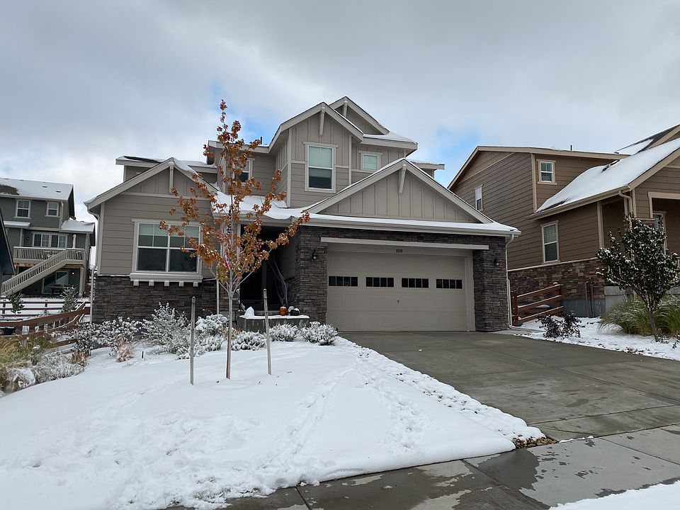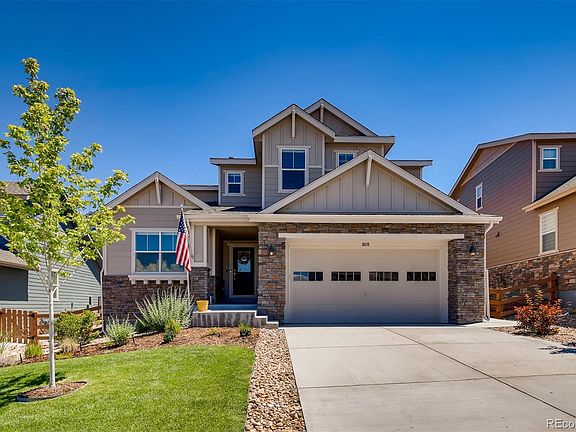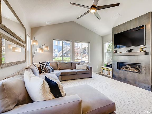 Beautiful, modern 4 Bedroom (w/ study) 3.5 Bathroom home in Whispering Pines with upgrades galore! Wood floors cover the open concept main floor including a spacious great room that boasts vaulted ceilings and an industrial, contemporary custom fireplace. Kitchen has large island, quartz counters, stainless steel appliances and pantry. Study, powder room, and mudroom with built-in lockers also on main floor. Master bedroom with tray ceiling and two additional bedrooms plus loft on second floor along with laundry room. Finished basement adds 1000 sq ft of bonus space and includes a dry bar, theater room, exercise room, a full bath, the 4th bedroom, and a utility rooms for storage. Lush backyard has cozy gas firepit, covered patio with gas stub for a BBQ or heater, and a second patio perfect for outdoor dining or a trampoline. Community offers an outstanding pool and clubhouse, unmatched views of the front range and downtown Denver, trails, and truly awesome neighbors.