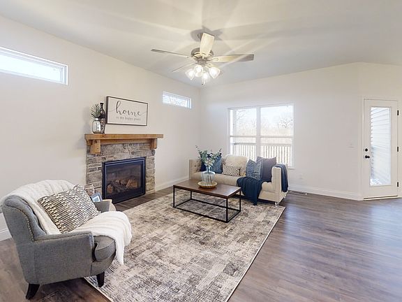 Stunning views!Looking for the perfect two-story home? The Basset floor plan has 1,878 finished sq ft, 3 bedrooms, and 2 and a half bathrooms. On the first level of this home, all common areas have LVP flooring and 9' tall ceilings. Entering from the porch, on one side of the hallway, there is a powder room and office. From the other side of the hallway, you have the garage entrance, drop zone, and laundry room. Entering the great room with a fireplace you will be impressed with the spacious luxury of the kitchen, dining area, and living room. The kitchen has a large island, stainless appliances, and many soft-close cabinets that provide plenty of storage. Leaving the kitchen you enter the master suite with a walk-in closet that can fit any wardrobe, and a spacious bathroom. The master bathroom includes a double vanity sink, a stand-in shower, and a water closet. Upstairs, there are two large bedrooms with spacious closets and a full bathroom with a double sink and shower tub combo. The basement has a rough-in for a full bathroom, a passive radon system, and a LIFETIME WATERPROOF WARRANTY, plus more!!