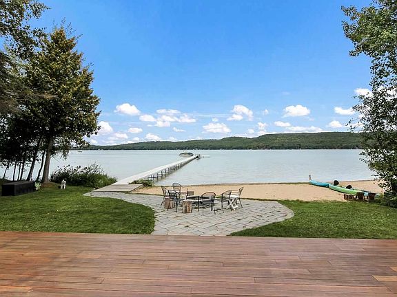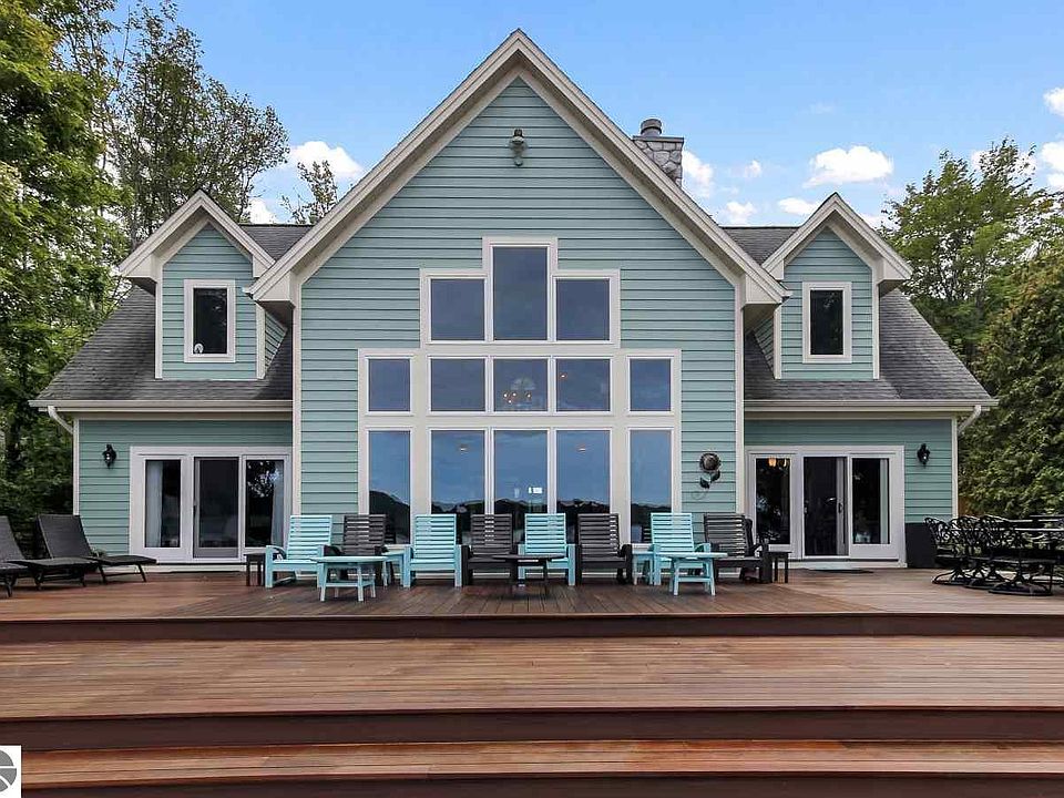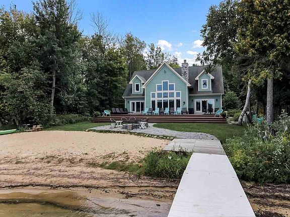 Little Glen Lake's south shore. Put the cell phone down & allow this delightful home with amazing views, calm you & fill you with peace. Owners purchased in 2012 & with many upgrades enhanced the already attractive house & property to a lovely house & beautiful setting. As you enter the 3.850 sq. ft., 4 bedroom, 3 ½ bath home, the great room with cultured stone fireplace, floor to ceiling windows, & stylish remodeled kitchen invite you to linger, relax & enjoy. 75' of sandy beach & lake bottom, patio with fire pit along with the spacious mahogany lake side deck offer hours of fun in the sun & lake. Offered turn-key, it's an easy decision - make those Glen Lake memories right away!