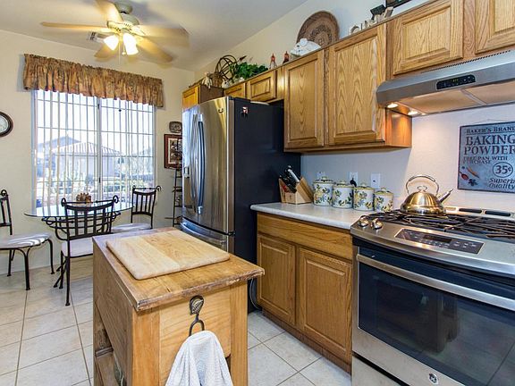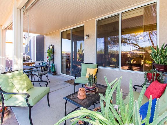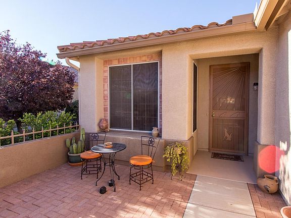 Beautiful, well maintained and upgraded Sierra model home. Lovely, private, paved entry patio. Gorgeous backyard with mountain views and no neighbors directly behind you. The kitchen space has been rearranged and the results are stunning. Newer stainless steel appliances in kitchen include gas range with hood, microwave, dishwasher and refrigerator. In addition, a newer washer /dryer and water heater.This home includes a five year termite warranty. Fenced back yard with lovely views of natural desert. Charming and move in ready. Call and come by today.