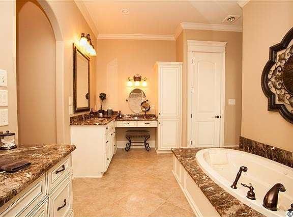 BEAUTIFUL MEDITERRANEAN HOME ON LARGE LAKE LOT WITH BULK HEAD, 18FT. BOAT DOCK AND ONLY A FEW STEPS TO THE WORLD CLASS AMENITIES CENTER. THIS HOME BOASTS: TILE ROOF, OVERSIZED 3 CAR GARAGE WITH A 10 X 16 HEATED/COOLED PERSONAL GYM OR COULD BE USED FOR STORAGE OR MEDIA ROOM, 4 LARGE BEDROOMS (ALL HAVE WALK-IN CLOSETS WITH CUSTOM BUILT DRAWERS AND SHELVING), FULL BATH IN EACH OF THE BEDROOMS AND ONE FULL BATH OFF THE BACK DECK (PERFECT FOR A POOL). MASTER BEDROOM OFFERS GREAT VIEWS OF THE LAKE, WALK IN STEAM SHOWER AND MORNING KITCHEN.