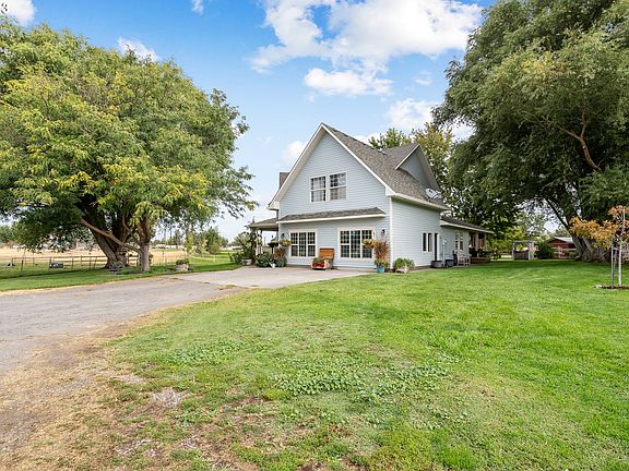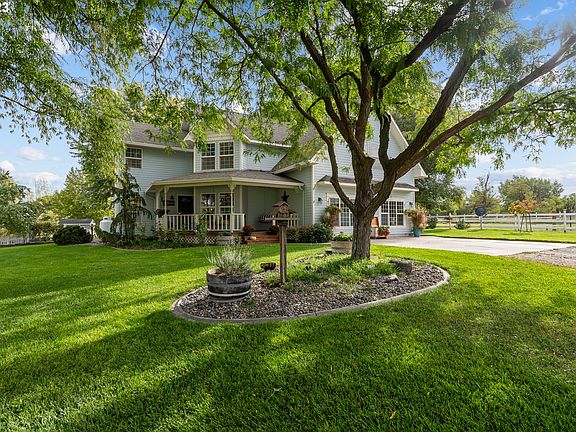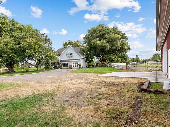Welcome to the epitome of rural elegance and easy living, an exquisite estate just outside Hermiston city limits. Immaculately updated, this 4 bed, 2.5 bath contemporary home sits on 1.9 tucked away acres. A recently completed kitchen remodel includes marble countertops, custom built soft-closing cabinetry with custom inserts by Gilberto Espinoza, top-of-the-line Thermador appliances including: 48in 6-burner gas range, cabinet depth paneled refrigerator and dish washer, commercial range vent, and built-in microwave. The downstairs includes beautiful acacia hardwood flooring, shiplap, custom window and door molding as well as crown molding throughout the main living area. In the oversized converted garage area you'll be met by charcoal colored slate tile flooring and plenty of extra room to envision your dream space. The primary bedroom upstairs offers a walk-in closet and full bath including a tub and shower. Host a BBQ out back under the covered Alaskan cedar deck perfect for entertaining friends and family. The main barn/shop is 24x48 with a 12' overhang, lofts on either side, and roll-up doors on the front and back. An additional outbuilding hosts a 12x12 pump house section as well as a 12x24 section with hay and feed storage and two stalls with automatic heated water. The property has underground sprinklers and water rights though HID to keep the grounds looking green and healthy. Other property amenities include a fire pit area, peach, nectarine, pear, and pecan trees, an oversized walkabout garden with raised beds and organics soil that sits next to a lively chicken coop, and much more. Schedule your showing today to see this absolute beauty!