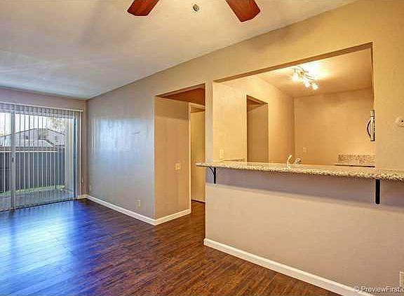 Beautifully updated studio in Mission Valley featuring granite countertops, stainless steel appliances, and fresh paint throughout. The bathroom includes a granite vanity and a pristine tile bathtub. Enjoy two spacious closets with built-in dresser and shelving. This desirable corner unit, located on the ground floor, offers a private patio. Ideally situated near downtown, beaches, shopping centers, major freeways, and public transportation offering both comfort and convenience in an unbeatable location.