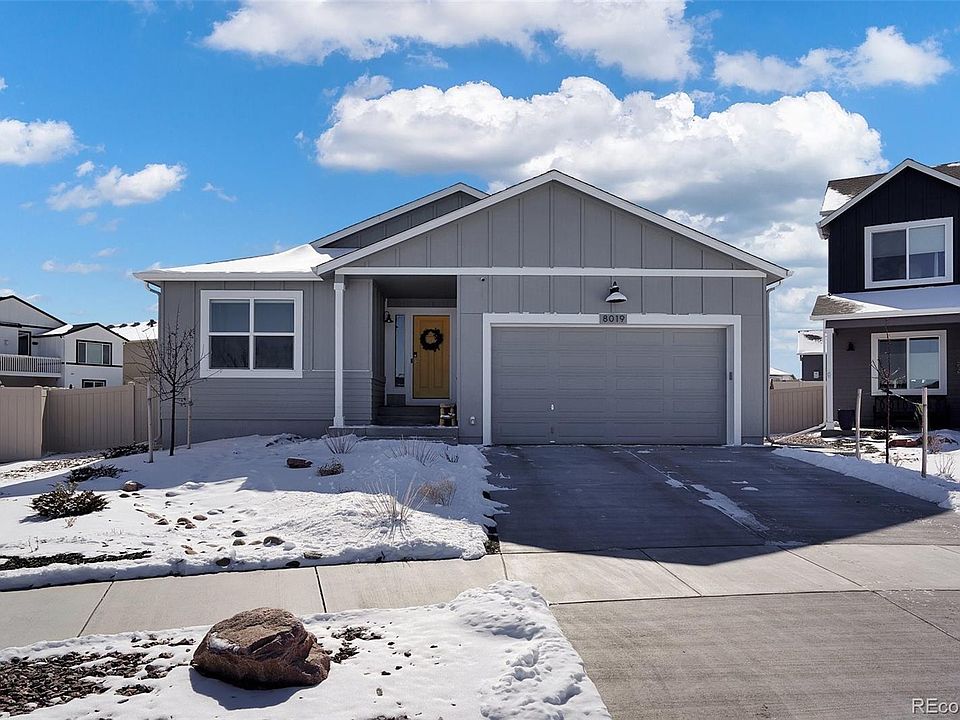 Don't miss out on this stunning, like-new home located in Cumbre Vista. Main level living located on nearly a quarter acre lot. The oversized 2 1/2 car garage provides plenty of storage with custom shelving and space for your bikes or motorcycle. Upgrades abound in this gorgeous home- upgraded lighting, HE furnace, HE water heater, central air, plus extra storage room in the basement that has been pre-plumbed and insulated for a future mother-in law suite. High ceilings, floor-to-ceiling windows, and crisp white walls give this home a grand and airy feel. Convenient mud room with laundry space, closet and storage on main level. Open floor plan with a dream kitchen! The kitchen features a double pantry, granite counters, island with bar seating, and upgraded appliances such as a five top gas range with vent hood, a convection oven, Maytag refrigerator. Not to mention there is a great flex space for an office! The great room has vinyl floors, a gas fireplace, and floor-to-ceiling windows. The dining space has walk-out access to the covered back patio, complete with a motorized sun shade and remote control. Large main level master with custom sliding barn door with modern design leading to your attached bathroom and walk-in closet. Another bedroom and full bath on the main level. The basement offers an expansive family room-- perfect for a theater room, home gym, hobby room, play room, or anything you can think of! There are two additional bedrooms, a full bathroom, and unfinished storage room on this level. Large back yard with automatic sprinkler system plus the playhouse and storage shed are included. Smart home features include a Nest thermostat, front doorbell, and driveway camera. D20 schools. Prime location- near Powers, Woodmen, Briargate corridor, I25, restaurants and shopping! Washer & dryer included. Added covers to all window wells. Don't miss out on this beauty! Buyer possession to be June 1st.