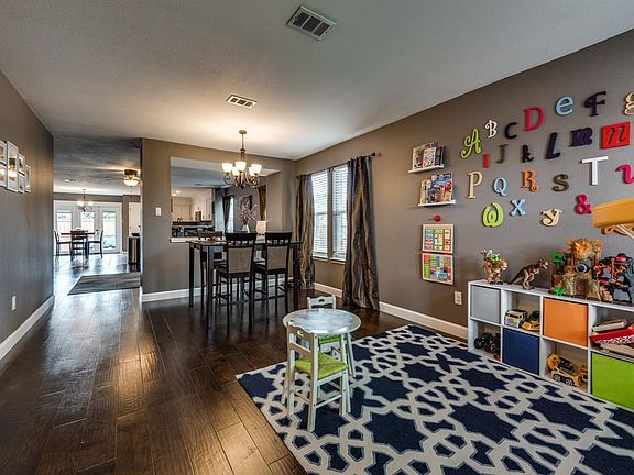 Beautiful home completely remodeled with all new lighting fixtures, exotic leather finish granite in the kitchen, stainless steel appliances, tankless water heater, fresh paint and all flooring. Newly installed triple French door addition to the breakfast area. Huge inside corner lot with oversized patio and storage shed. Directly behind the home is a bike & hike trail leading to the greenbelt, playground and splash park.