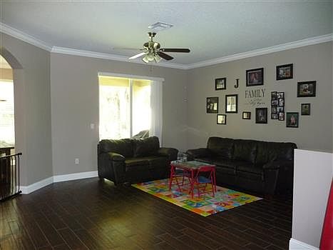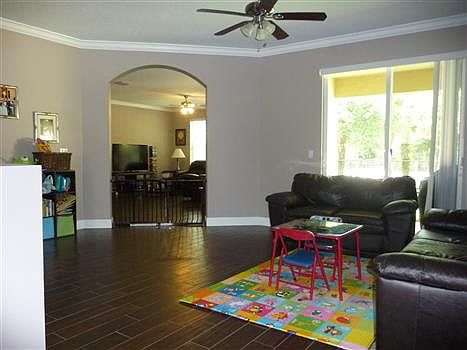 Like New.. Turnkey..Exceptional Home built in 2012 boasting: 4 bedrooms, 2.5 baths,2 car garage.Tons on upgrades: Wood tile & floors,crown molding & baseboards,stainless steel appliances, 42 in kitchen cabinets,marble top vanities, arch hallways etc. Formal dining, living & family rooms, breakfast area, lots of natural light, covered patio,barrel tile roof, paved driveway, Carrier ac system and so much more. Community nested in quiet area featuring paved roads, community pool, grass areas etc.