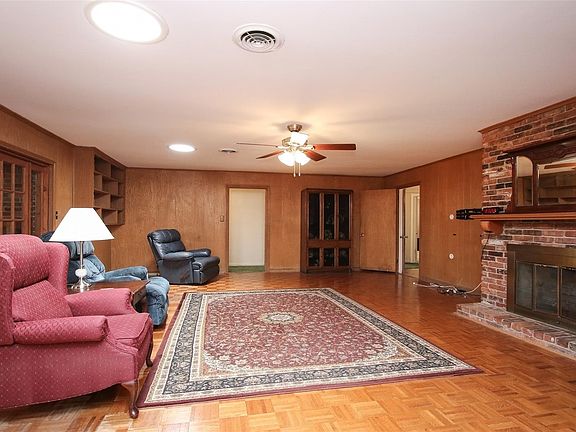Welcome home to this spacious, well cared for by original owner 1-story in Maplewood! This sprawling home is loaded with potential. Features include: Original hardwood floors throughout; open Kitchen with updated appliances, recent sink/faucet and tons of cabinet space; large Breakfast room with a highbar for additional seating; enormous Family Room with brick, gaslog fireplace; large Primary Bedroom with double closets and french doors leading out to the enclosed patio; oversized secondary Bedrooms with original Formal Living Room converted into Bedroom #4; huge enclosed covered patio area with AC window unit; large yard with covered patio; mature trees; storm windows; upgraded electrical panel with surge protector.