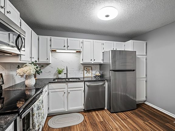 Beautifully updated corner-unit home offering an abundance of natural light through large windows. This thoughtfully remodeled residence features luxury plank flooring, stainless steel appliances, granite countertops, modern lighting, and a stylish backsplash. The spacious main bedroom includes two large closets and a private 3/4 bathroom. A second bedroom, ideal for use as a guest room, den, or office also includes ample closet space. The home includes a full-size washer and dryer, a second full bath with a skylight, and a well-appointed kitchen with a convenient pass-through to the dining area. Enjoy the landscaped grounds with access to a shared gazebo and gas grill. Heated shared parking garage includes an assigned parking space, storage area, and car wash. Monthly . Conveniently located near shopping and with easy access to I-494, this home offers comfort, convenience, and style.