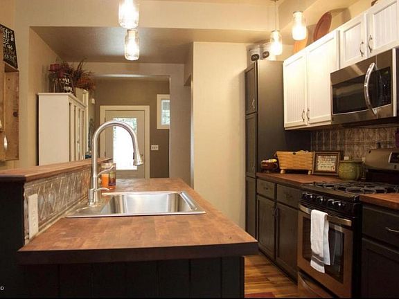 Beautiful older home extensively updated with new siding, windows, soffit & fascia, front porch, doors-on the outside and updated water/sewer, kitchen remodel with new appliances, Oak flooring on main; paint, trim carpet & doors on 2nd floor, newer 50 gallon electric water heater, 2 car garage with lots of room for more, 1/2 bath on main in progress. PP: Refrigerator, stove, DW, Microwave, washer, dryer, window treatments, 2 window AC, 1 garage door opener & control.
