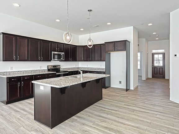 This Monroe townhome features a 2-car garage, open living areas and the convenience of 1-story living.. The owner's suite with private bathroom and closet is situated on one side of the home, while the living areas enjoy an open plan from the foyer, through the kitchen, all the way back to the dining area and family room. Bedroom #2 is located at the front of the home, near a 2nd full bathroom. The Monroe offers ease of entertaining, while allowing privacy for both bedrooms. (Pricing may reflect limited time savings/incentives. See Community Sales Manager for details.)
